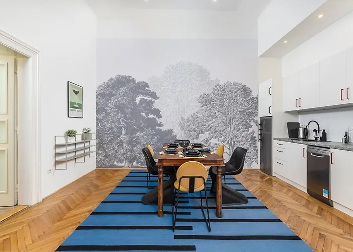 The 90 m² City Center Apartment With Balcony Budapest is situated approximately a 5-minute walk from Erzsébet Square and 25 km from Budapest Ferenc Liszt International airport. This 1-bedroom apartment features Wi-Fi throughout the property.